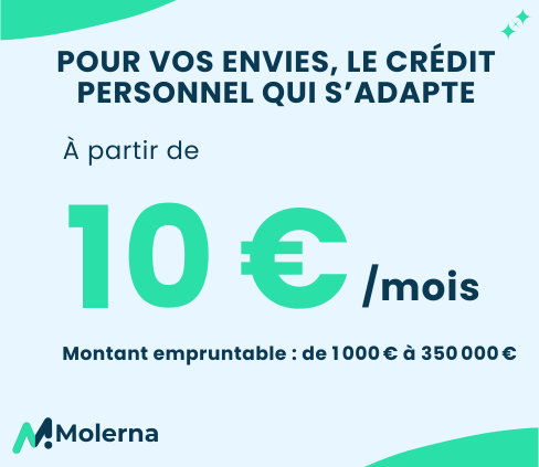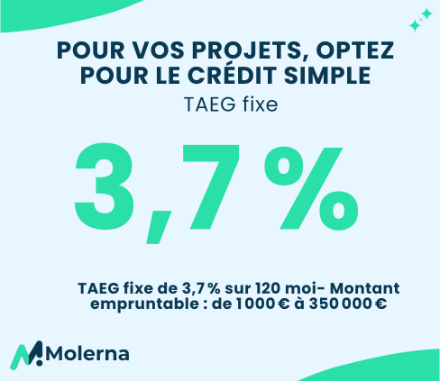 Molerna facilite votre accès au crédit en vous mettant en relation avec nos partenaires. Nous ne sommes pas une banque, mais un établissement de crédit. Chaque offre est soumise à l'examen et à l'acceptation de votre dossier.